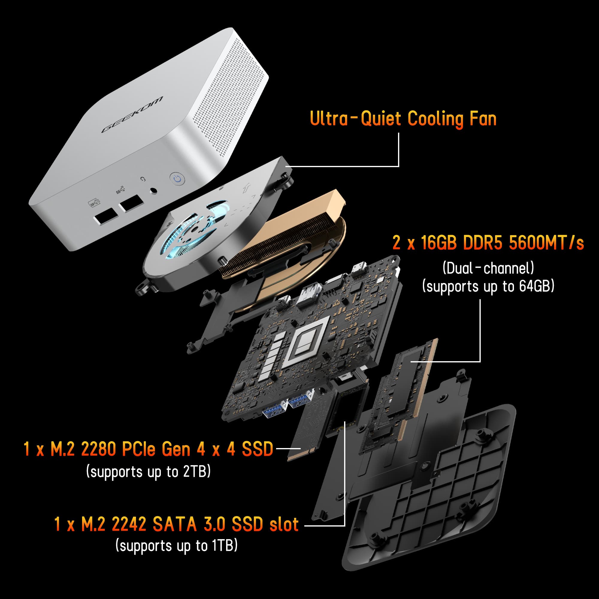 - M.2 2280 PCIe 4.0 ×4, up to 2 TB