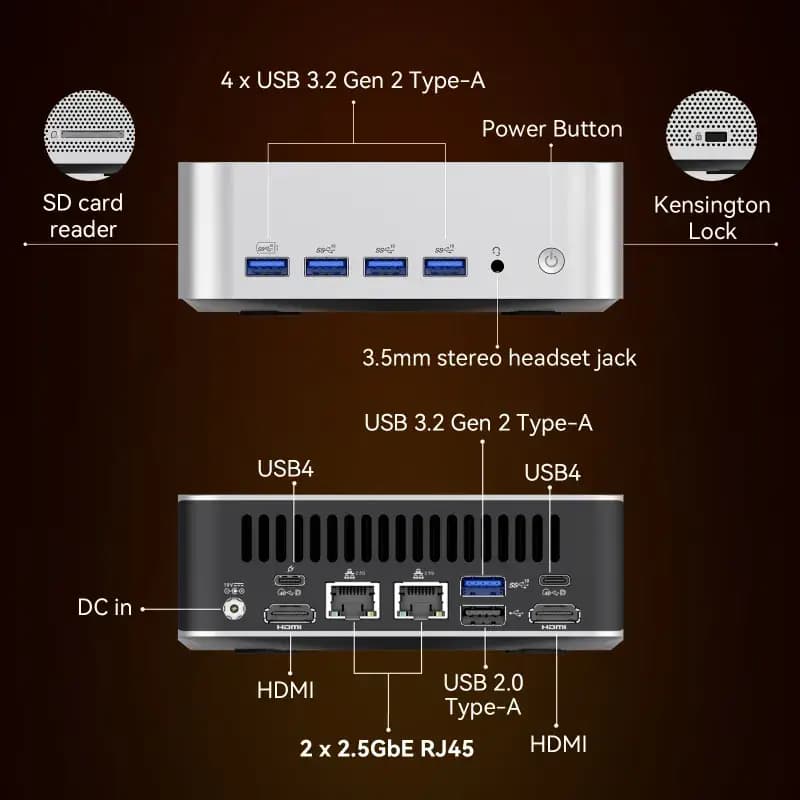 - Dual Ethernet Ports – Built-in 2.5G dual Ethernet ports support internal/external network separation or link aggregation, meeting the demanding network requirements of tech enthusiasts.