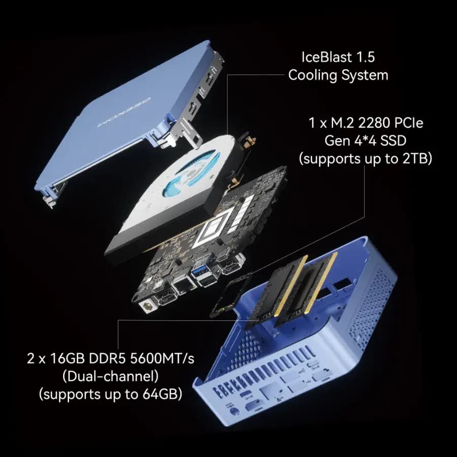 - Dual-channel DDR5 5600MT/s, up to 64GB.