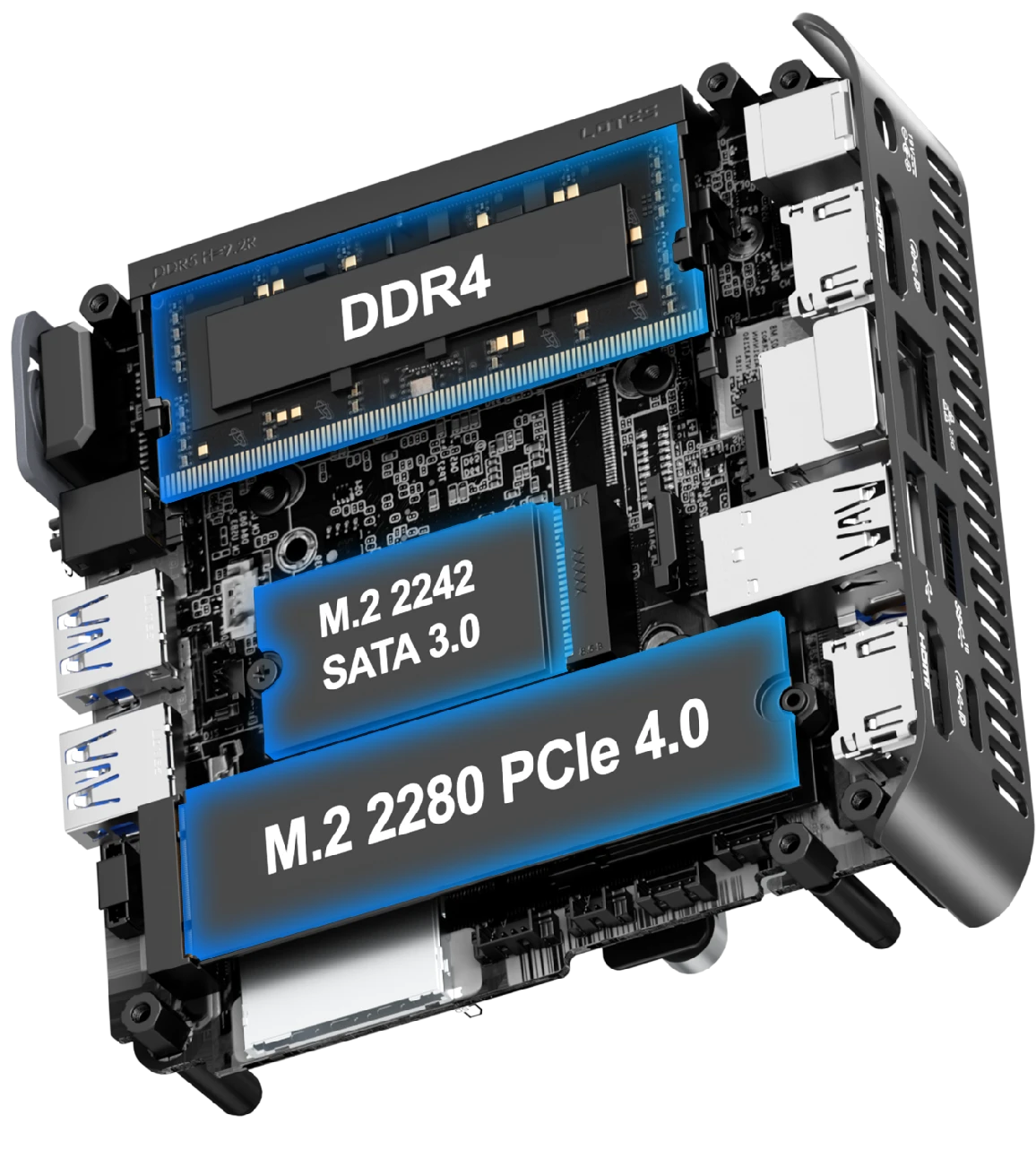 - Rich interfaces: 6 USB ports (including 2 Ć USB4 ports), SD card reader, and supports 4 displays expansion.