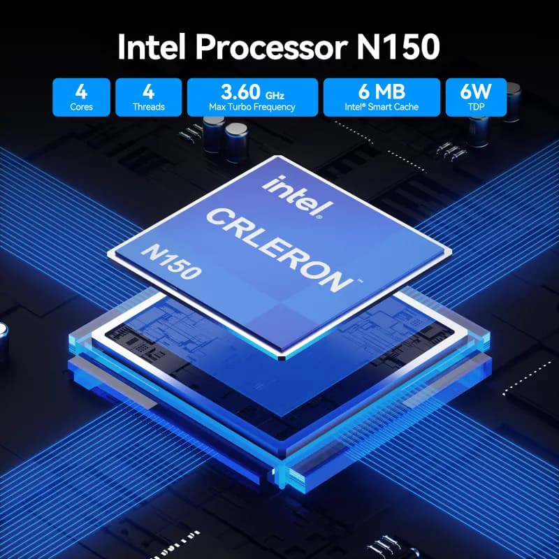 - 12th Gen Intel® Processor N150, delivering 20% faster performance than the N100