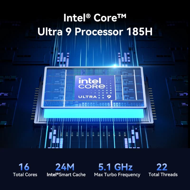 - Elite Intel Core Ultra AI Power: Command next-gen performance with the 16-Core Intel Core Ultra 9 185H (45W TDP). Harness dedicated AI acceleration and Intel Arc graphics to crush demanding workloads at up to 5.1GHz in a compact 0.9L footprint.