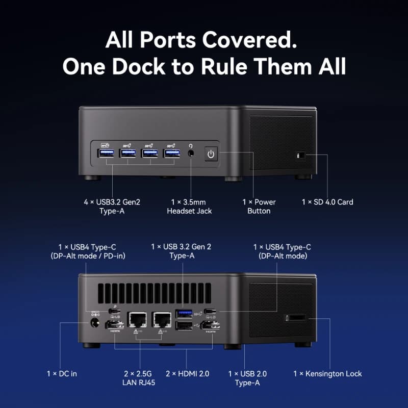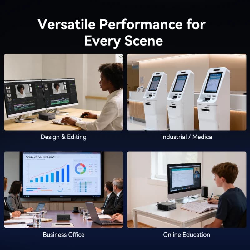 - Silent Cooling for 45W TDP: Eliminate thermal throttling. Our advanced thermal system is engineered to handle the high-performance Core Ultra 9, keeping the system ice-cold and whisper-quiet even during 24/7 heavy use or industrial applications.