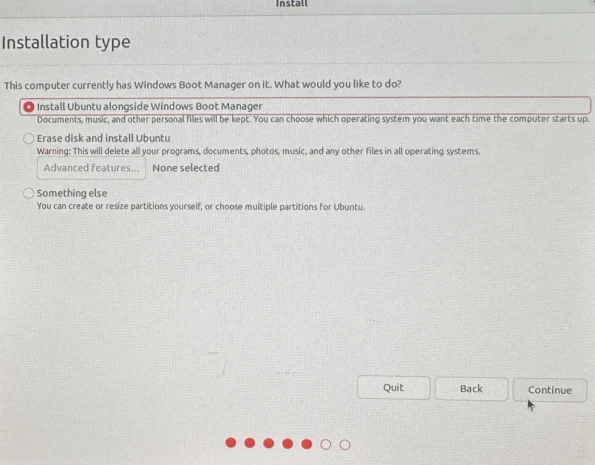 Select Windows Boot Manager to coexist with Ubuntu, then click Continue