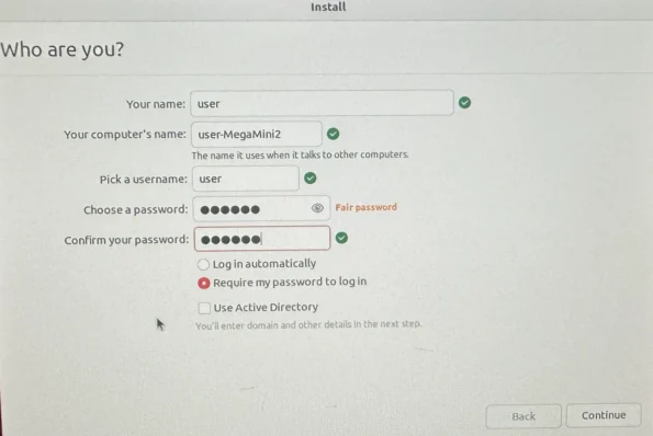 Create a user name and password (you will need to confirm the password when setting it)