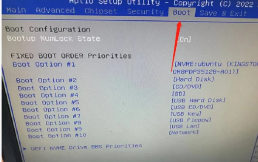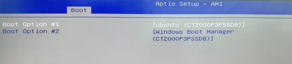 - Set Boot option #1 to “Ubuntu ..”