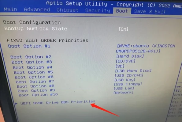 Select the “UEFI NVME Drive BBS Priorities” option