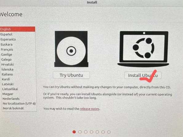 Select the required language, then click install Ubuntu to proceed to the next step
