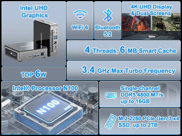 - 12th Gen Intel Alder Lake N100 processor.