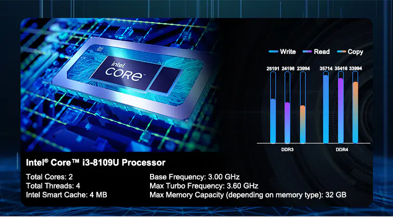 - Comes with Intel® Core⢠i3 8109U.